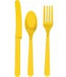 (24) Plastic yellow cutlery: 8 Forks, 8 Knives, 8 Spoons